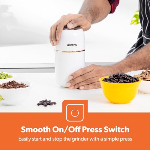 GEEPAS 1.5L Filter Coffee Machine & Coffee Grinder 80g Capacity Combo Set | 800W Coffee Maker for Instant Coffee, Espresso, Macchiato | 200W Electric Coffee Grinder for Dried Spice Nuts Herbs | White