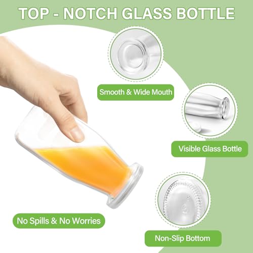 - Premium Quality: This set includes 12 premium, thick glass milk bottles (200ml/6.8oz each) with leakproof lids and 24 custom stickers—perfect for beverages, DIY projects, or everyday storage. The generous quantity surely meets your daily needs.