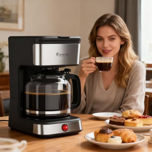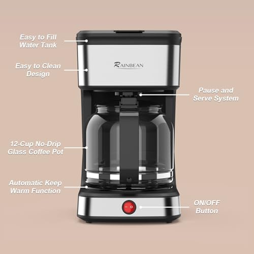 RAINBEAN 15-Cup Drip Coffee Maker,Home/Office Coffee Brewing Machine with Removable Filter,Glass Carafe and Heated Base,Black & Stainless Steel