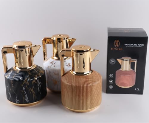 JMAHM 1L Thermal Coffee Carafe & Tea Dispenser – Insulated Jug Keeps Drinks Hot for 12 Hours & Cold for 24 Hours (Brown Design)