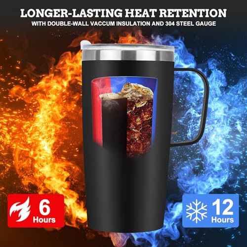 • Perfect Gift: This insulated coffee travel mug with handle has a capacity of 20oz (600ml) and dimensions of 17.2cm*8.8in/6.8cm*3.5in. Ideal for anyone who enjoys a thermal travel or iced drink cup, this insulated mug serves as a wonderful gift for family or friends, colleagues for holidays or birthdays.