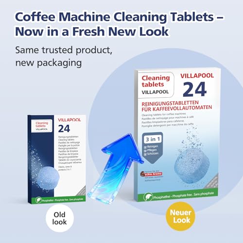 VILLAPOOL 24 x 3-phase coffee machine cleaning tablets. Compatible with Jura and all Fully Automatic Coffee Machines. Dissolves coffee oils, dirt and residues. Replacement for Jura cleaning tablets