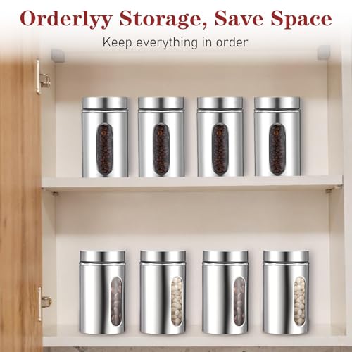 Set of 3 Large Airtight Kitchen Canisters – Stainless Steel Storage Jars for Coffee, Sugar, Tea & Candy with Window Glass Lids (32 oz)