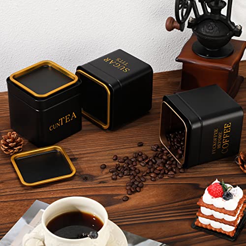 3 Piece Novelty Sugar Tea Coffee Canister Set Gifts Naughty Black Stainless Steel Containers Airtight Metal Coffee Jar with Gold Lid for Home Food Storage Flour Spice Kitchen Decor Cafe Accessories