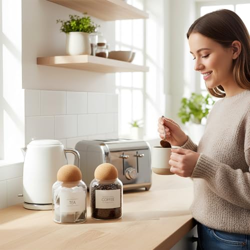- Includes 6 Premium Sticker Labels: Comes with labels for “Tea”, “Coffee”, and “Sugar” in two distinct styles, allowing you to personalise your jars to match your aesthetic.