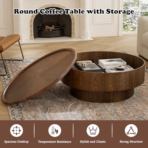 - ☕ Chic and Stylish Round Coffee Table: This Round Coffee Table with Storage showcases a chic design and an ideal blend of storage space beneath the lid. While providing generous storage, it also ensures a stable base. Its minimalist style makes this coffee table suitable for any room in your home.