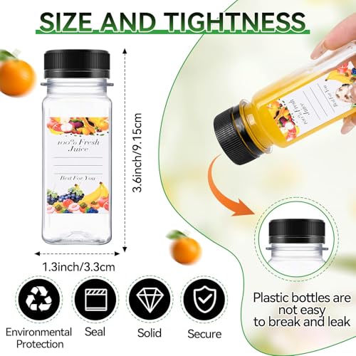 - Leak-Proof Bottle Caps: Each small plastic bottle comes with a black leak-proof cap to prevent liquid spillage and ensure safe storage of drinks in the refrigerator, whether lying down or standing.