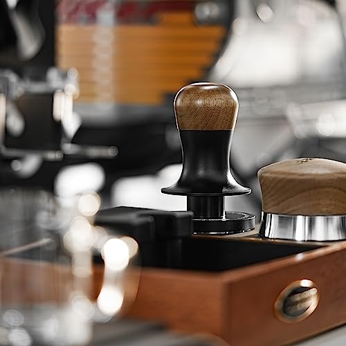 - ERGONOMIC DESIGN: The tamper features a comfortable contact surface for your fingers while tamping. Its handle gracefully combines wood and metal, ensuring both elegance and sophistication.