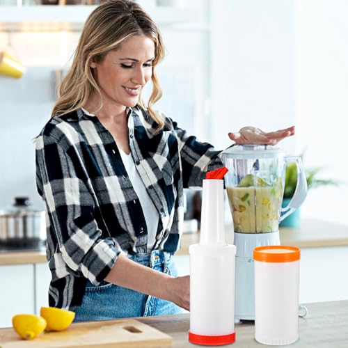 • 【6-Pack Bar Bottles (34oz/1L)】: Includes 6 sturdy, food-safe PP plastic store & pour containers (3.7"W x 13"H) for high-capacity home or commercial bar applications.