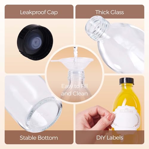 8 OZ Glass Bottles with Lids, 24 Pack Leakproof Glass Containers for Vanilla Extract Homemade, Food Storage, Juice, Essential Oils, Hot Sauce, Syrup, Beans, Boston Round Clear Bottles