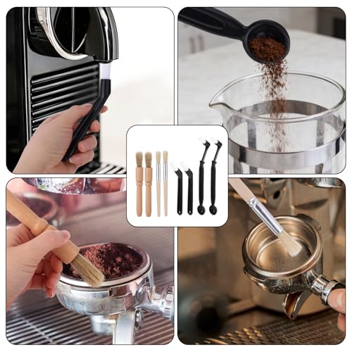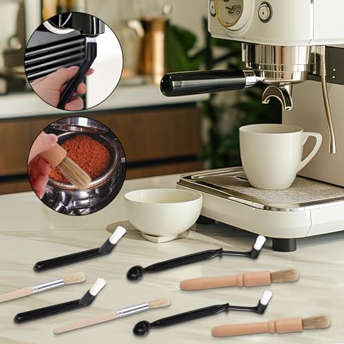 - Package Contents: This set features 8 coffee brushes across 4 unique styles, with 2 of each design. Sufficient for your requirements, these brushes are perfect for cleaning espresso machines, coffee grinders, portafilters, milk pitchers, coffee cups, and machine exteriors.