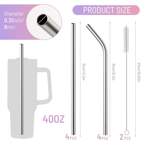 - Versatile and Practical: Expertly designed, these reusable stainless steel straws are specifically crafted to seamlessly fit 40oz drinking cups. Furthermore, they are suitable for a wide array of beverages, including smoothies, lemonade, milkshakes, cocktails, hot chocolate, coffee, and juices, ensuring a versatile and enjoyable sipping experience.