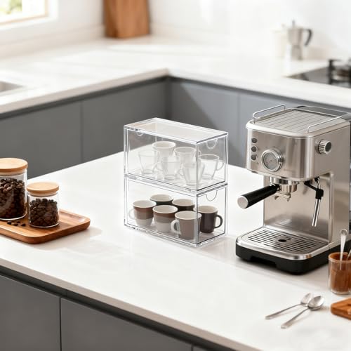 - [Clean and Aesthetic, Enhances Spatial Awareness] The transparent design permits a clear view of the interior contents, enabling you to swiftly locate what you require without opening the drawer. The two-pack design provides versatile storage options, assisting you in keeping your tea table neat and organised, while adding a contemporary, minimalist flair to your home or office.