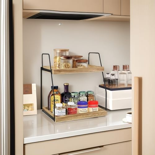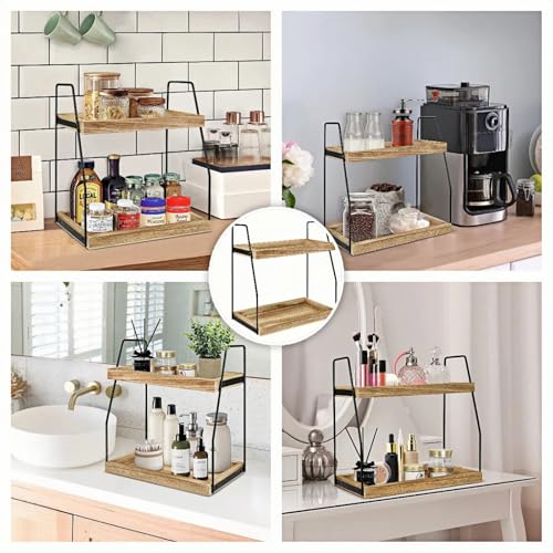 - Space Saver: Tired of a cluttered countertop? Fear not, our coffee condiment organiser will resolve your issues. Constructed from sturdy metal and solid wood, this lightweight coffee bar organiser is the answer. Its two-tier design allows you to maximise any countertop or coffee corner, perfect for kitchens, offices, break rooms, or catering, making it easy to find what you need quickly.