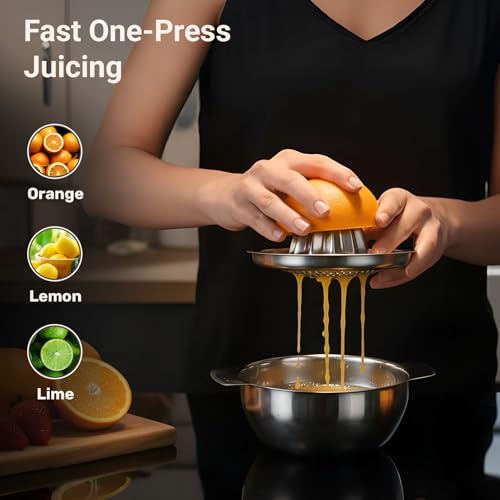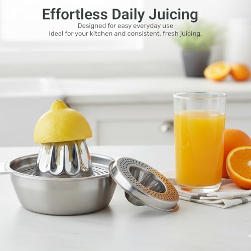 - VERSATILE KITCHEN TOOL: Perfect for lemons, limes, oranges, and other citrus fruits, this manual juicer is essential for daily cooking, drinks, marinades, salad dressings, and baking. A practical and versatile tool that seamlessly fits into any home kitchen for regular juice preparation.