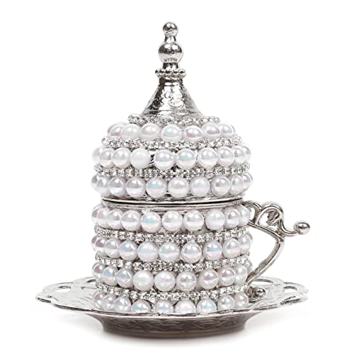 Alisveristime Ottoman Turkish Greek Arabic Espresso Coffee Mugs with Saucer and Lid (Pearl Set) (Set of 2) (Silver)