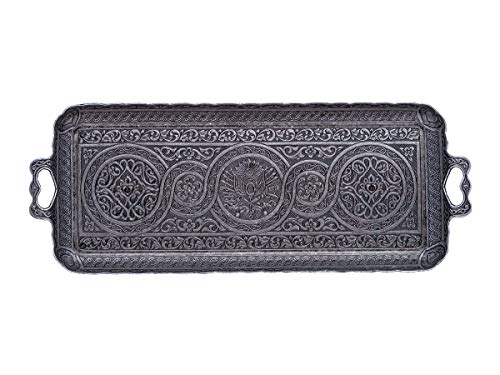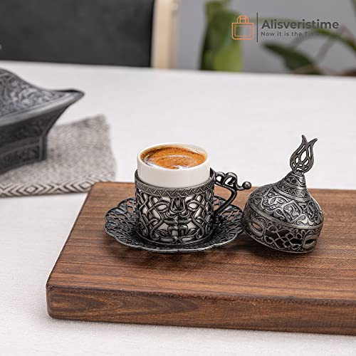 Alisveristime Turkish Coffee Set for Two – Authentic Ottoman Style Cups, Saucers, and Serving Tray with Lale Patterns (Acur) (Black)