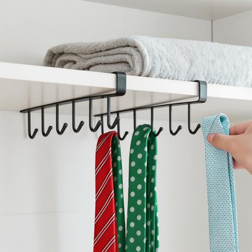 - Space Saving: Mug racks are ideal for kitchens, wardrobes, bookshelves and more; this cabinet cup holder maximises space utilisation. Each cup rack organiser comes with 6 hooks, accommodating not only cups but also coffee mugs, tea glasses, kitchen utensils, ties, bags, and other items, optimising storage whilst maintaining home tidiness.