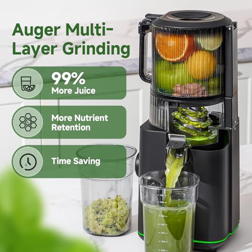 The AMZCHEF cold press juicer features a 160MM wide chute and 2500ML hopper, allowing you to juice whole fruits and vegetables without tedious pre-cutting. Its automatic feeding design guarantees rapid extraction of fresh juice, perfect for nourishing breakfasts or healthy daily beverages.