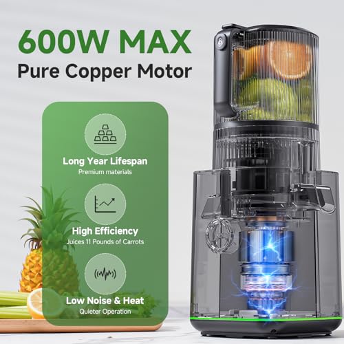 - Premium Low-Noise Motor: The AMZCHEF slow juicer boasts a high-performance masticating motor that effortlessly processes hard ingredients like carrots and apples. Its durable design ensures longevity, low noise, and stable operation, making it perfect for daily use and large family gatherings.