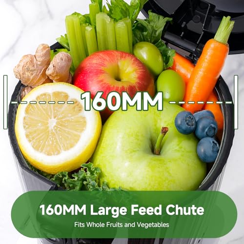 AMZCHEF Cold-Press Juicer Machines, 160MM Wide Chute Slow Juicer for Whole Fruits and Vegetables, 2.5L Large Capacity Automatic Juicer with 250W Quiet Motor & Triple Filters, Bright Black