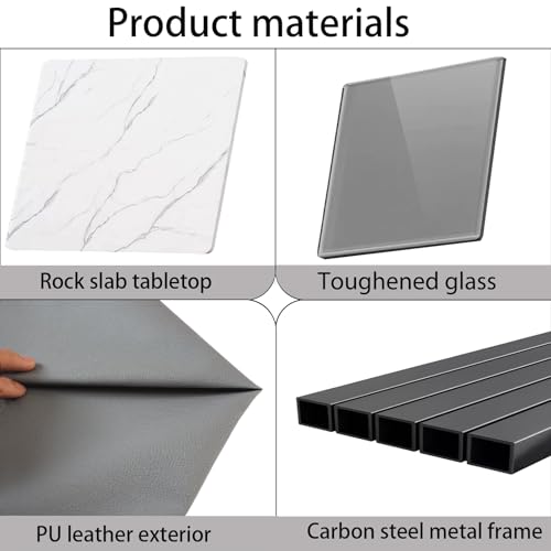 - [Robust, Quality Construction] Crafted from a marble-patterned top, with a glass surface supported by a sturdy matte black metal frame. This structure ensures long-lasting stability, excellent load-bearing capacity, and remains easy to wipe clean and maintain.