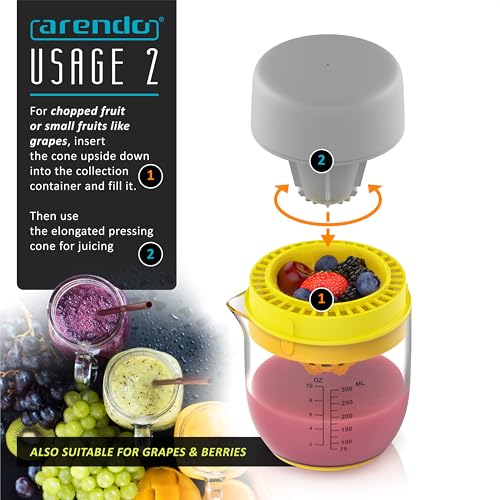 Arendo Manual Juicer with Dual Methods of Use, 300 ml Capacity, Citrus Juicer, Orange Squeezer, Lemon Press, Lime Juicer, Fruit Squeezer for Grapefruits and Blueberries