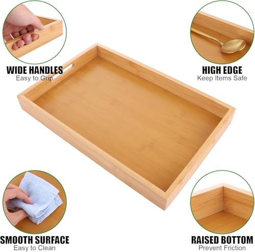 Selected Bamboo Serving Tray with Handles, Rectangular Platter for Food, Tea, Coffee, Drinks, Breakfast, Lunch, Dinner – Large 38 x 25 x 4 cm