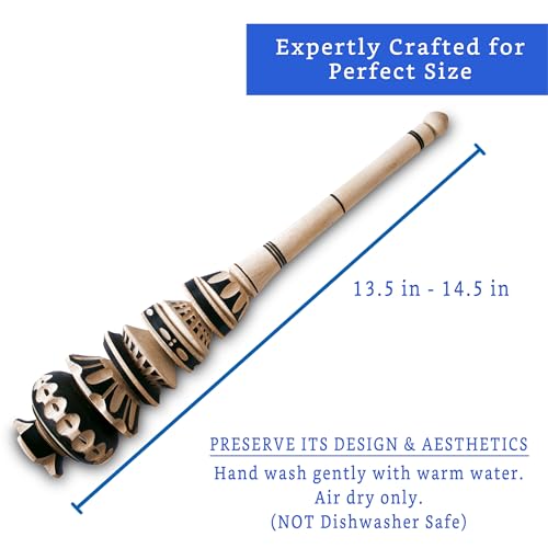 - Unique Molinillo Masterpiece: Each Molinillo is crafted from a single piece of turned wood, hand-carved to create this masterpiece. Each molinillo is unique and measures between 13.5 and 14.5 inches, as these artisan pieces may vary slightly.