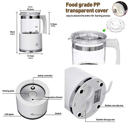 • [Versatile Milk Frother] – Features a single display button for heating milk, warming and frothing milk, or simply frothing cold milk. (Note: the device does not cool milk.) Unlike more complicated controls of other frothers, operating this milk frother is considerably simpler.