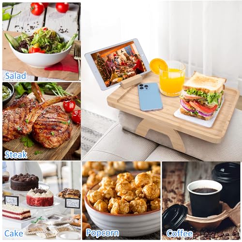 - Enhance Your Comfort: Our bamboo sofa tray allows you to enjoy watching TV with everything you need conveniently accessible, including remote controls, beverages, snacks, mobile phones, etc. Ideal for individuals who wish to remain stationary.