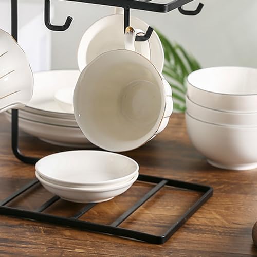 - Space-Saving: In addition to the hooks for cups, this cup stand for mugs also accommodates bowls, plates, and saucers on both the top and bottom.