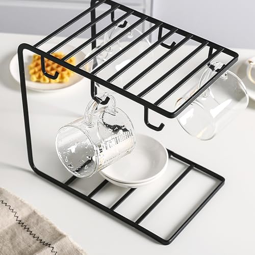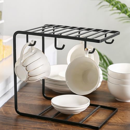 Beowanzk Mug Holder with 6 Hooks for Mugs, Mug Tree Holders for Kitchen, Mug and Cup Storage/Stand/Rack/Holders/Organiser (Black)