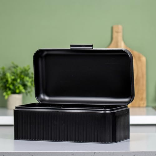 - LOCK IN FRESHNESS – The canisters’ secure-fit lids will preserve freshness after adding teabags, coffee, or sugar, while the hinged lid, rear vents, and durable metal construction of the bread bin ensure your bread remains fresh for longer.