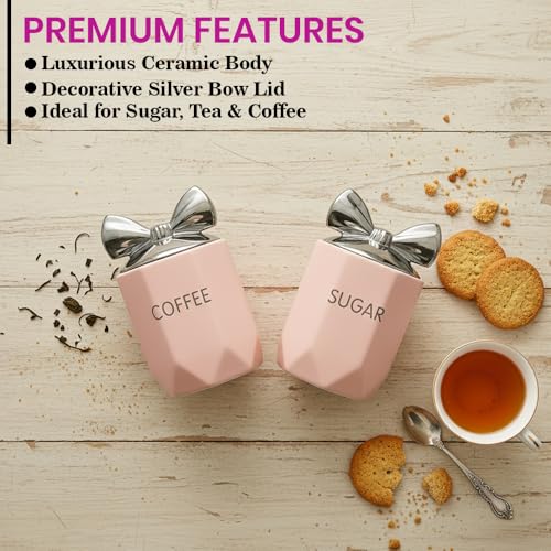 - ✨ Modern & Decorative Design: The elegant pink ceramic finish with stylish silver bow lids adds a touch of luxury to your kitchen décor. Ideal for both modern and classic aesthetics.
