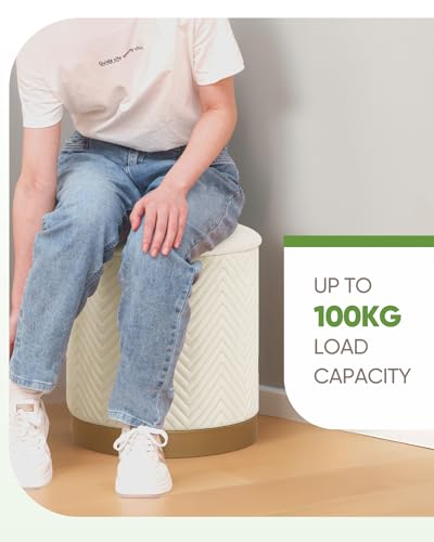 Bonlife Round Ottoman with Storage Pouffe, Folding Foot Stool with Lid, Velvet Vanity Stool for Living Room, Bedroom, Entryway, White, 37.5×37.5×42.5cm