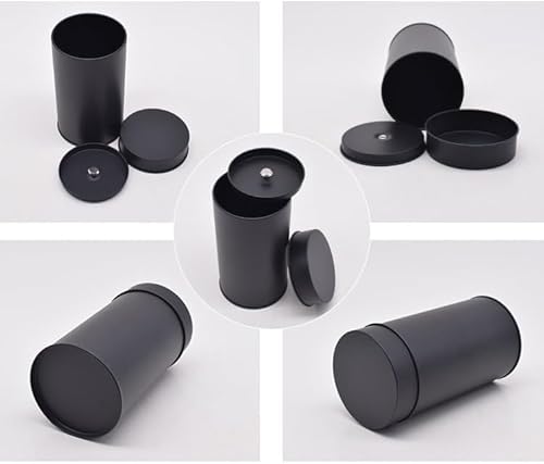 BSTMOME 3PCS Metal Tea Tin Canister with Airtight Dual Lids 16 oz Round Tin Container with Lid Double Sealed Small Kitchen Storage for Loose Tea Coffee Sugar Candy Herbs and Spices (Black)