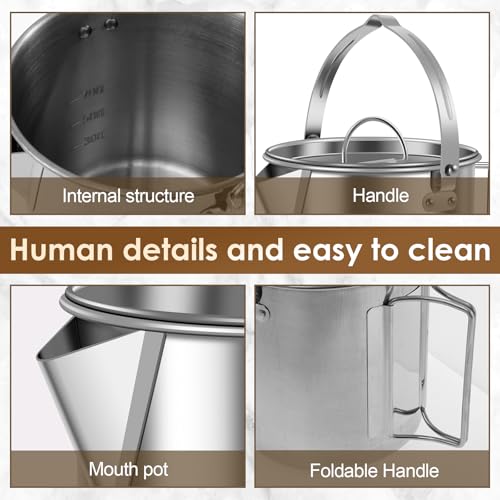 - Stainless Steel Composition: This camping kettle is crafted from stainless steel, safe and durable; robust and long-lasting; suitable for extended use.