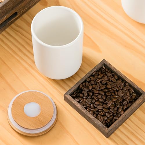 Kendiis Ceramic Canister Set for Kitchen – 3-Piece White Canisters with Airtight Wood Lids for Flour, Sugar, Tea and Coffee Storage