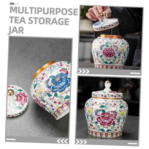 VILLCASE Vintage Chinese Ceramic Tea Canister with Airtight Seal for Loose Leaf Storage – Multi-Purpose Kitchen Jar for Tea, Snacks, and Bulk Foods with Elegant Floral Enamel Design