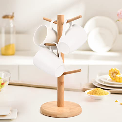 - Space-Saving: The Mug Tree Holder is removable and can hold 6 mugs simultaneously; wooden mug racks are designed to hang mugs vertically, taking up less countertop space and keeping your area tidy.