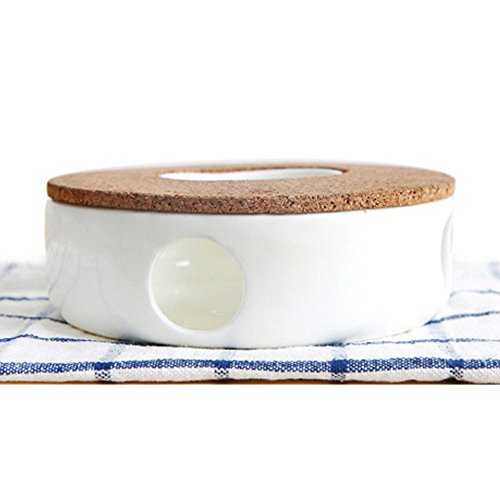 TAMUME Classic Porcelain Teapot Warmer with Safe Cork Stand for Teapot, Tea Warmer Stand with Candle Room, Tealight Holder, Perfect for Glass, Porcelain, and Ceramic Teapots (White)