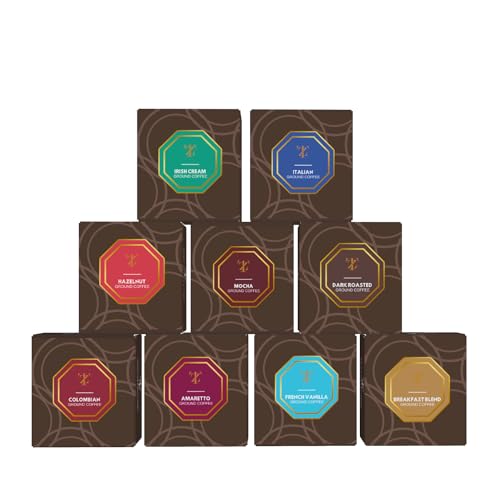 Coffee Gifts – Coffee Gift Set, 9 Flavoured Ground Coffee For Cafetiere For Men, Women | French Vanilla, Irish, Italian, Hazelnut, Christmas Gifts For Him, Her (Ground)