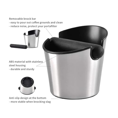 - This stainless steel coffee grind knock box serves as a coffee grind dump bin and waste container, compatible with espresso machines, and is a widely used coffee auxiliary tool for both home and café environments.