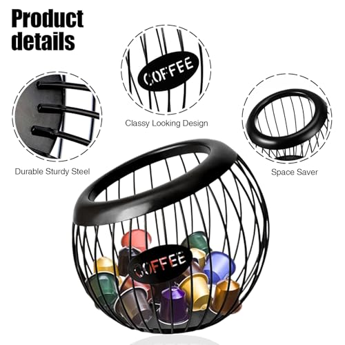 QKNOSM Coffee Pod Holder – Large Capacity Espresso Pod Storage Basket in Black Metal for Kitchen and Office Use