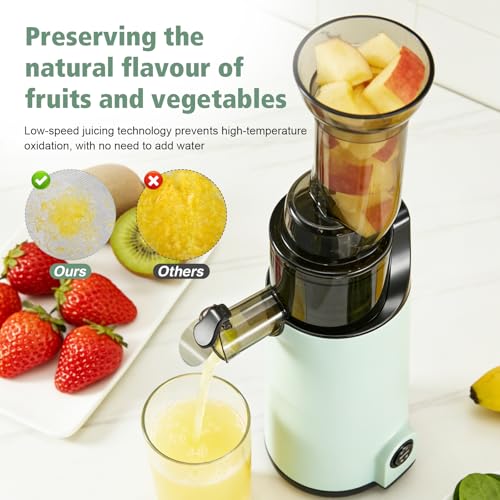 • Nutritious and Delicious: The juicer uses low-speed juicing to prevent high-temperature oxidation, allowing you to enjoy juice without added water, preserving the taste and nutrition of fruits and vegetables.