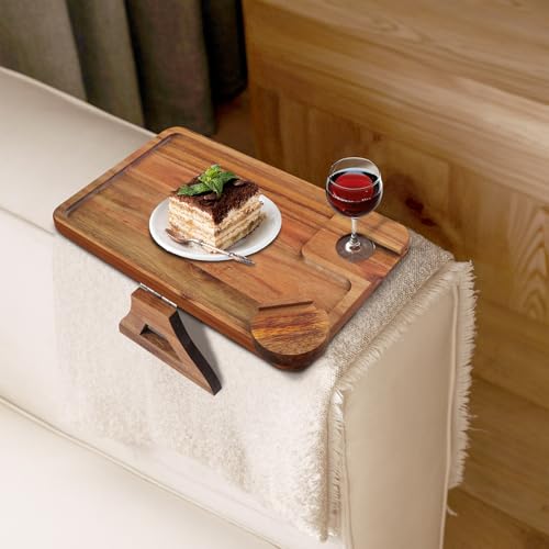 - Suitable for Various Sofas: The angle of the clip-on tray can be adjusted to accommodate different sofa armrests, guaranteeing a secure and stable fit for sofas ranging from 10cm to 33cm wide. Perfect for adapting to diverse living spaces and scenarios (Measure your couch arm before ordering).