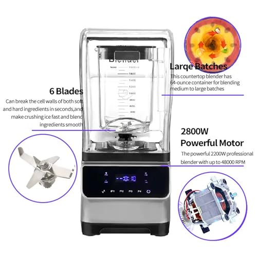 - Commercial Smoothie Maker Machine: 2200W Professional Countertop Blender featuring a soundproof housing and timer function, 9-speed adjustable settings, and a 1.8L large capacity for smoothies, ice, and frozen fruits.