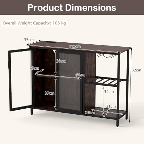 - Organised Storage Solutions: The industrial sideboard buffet features a spacious top surface, wine glass racks, wine bottle holders, an open shelf, and a cabinet with doors. These designated storage areas keep your collection well-organised and easily accessible.
