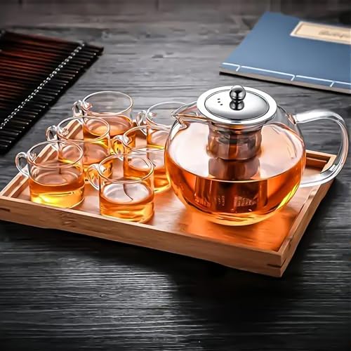 • Robust Borosilicate Glass Construction: Crafted from heat-resistant, hand-blown borosilicate glass, this teapot is flame and stovetop safe, guaranteeing long-lasting use without fracturing under high temperatures.